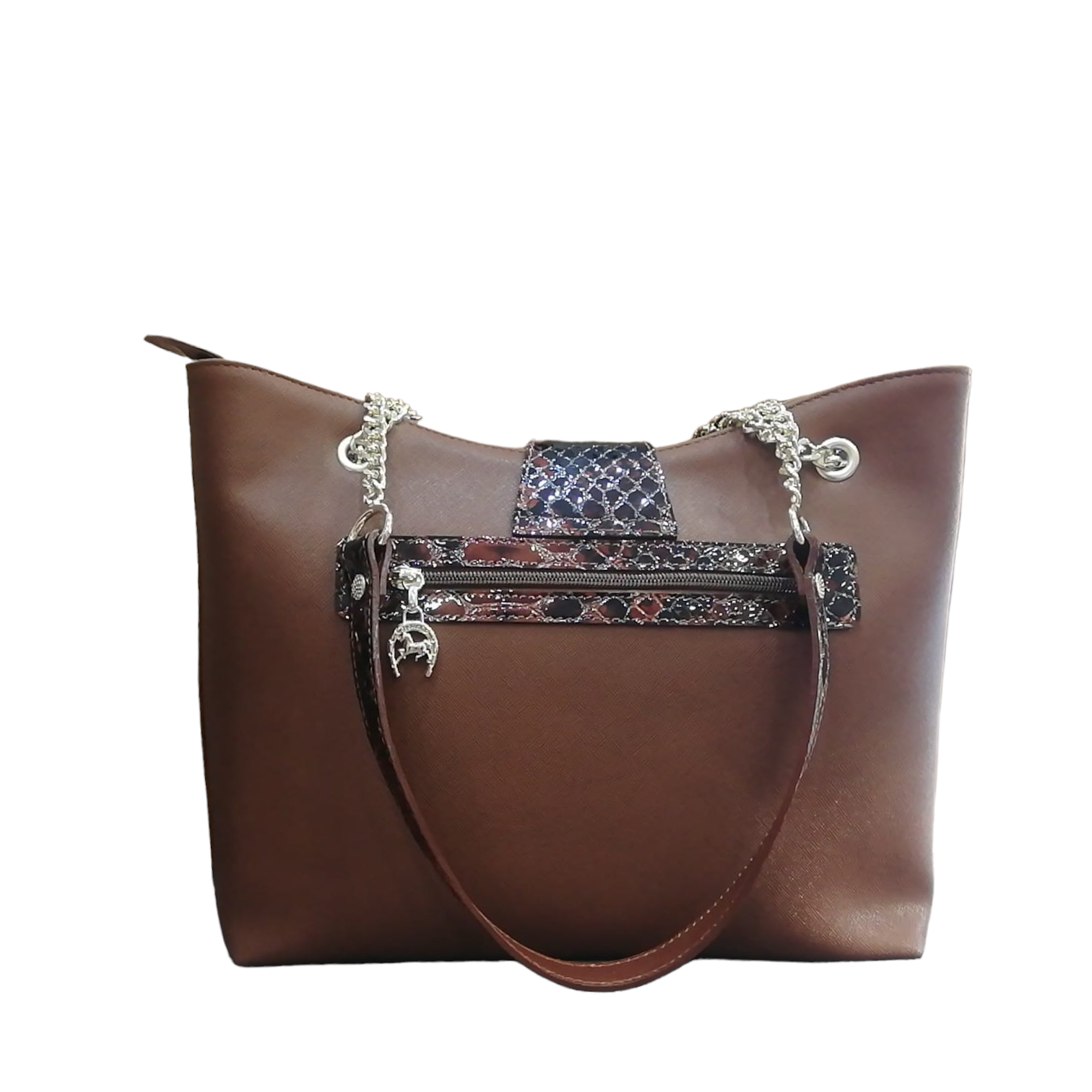 Bolsa de ombro e uma pala com fecho. A divisão principal possui 5 compartimentos, dois livres, dois com fecho de correr e um para telemóvel.  Apresenta uma divisão na parte de trás com fecho de correr personalizado.