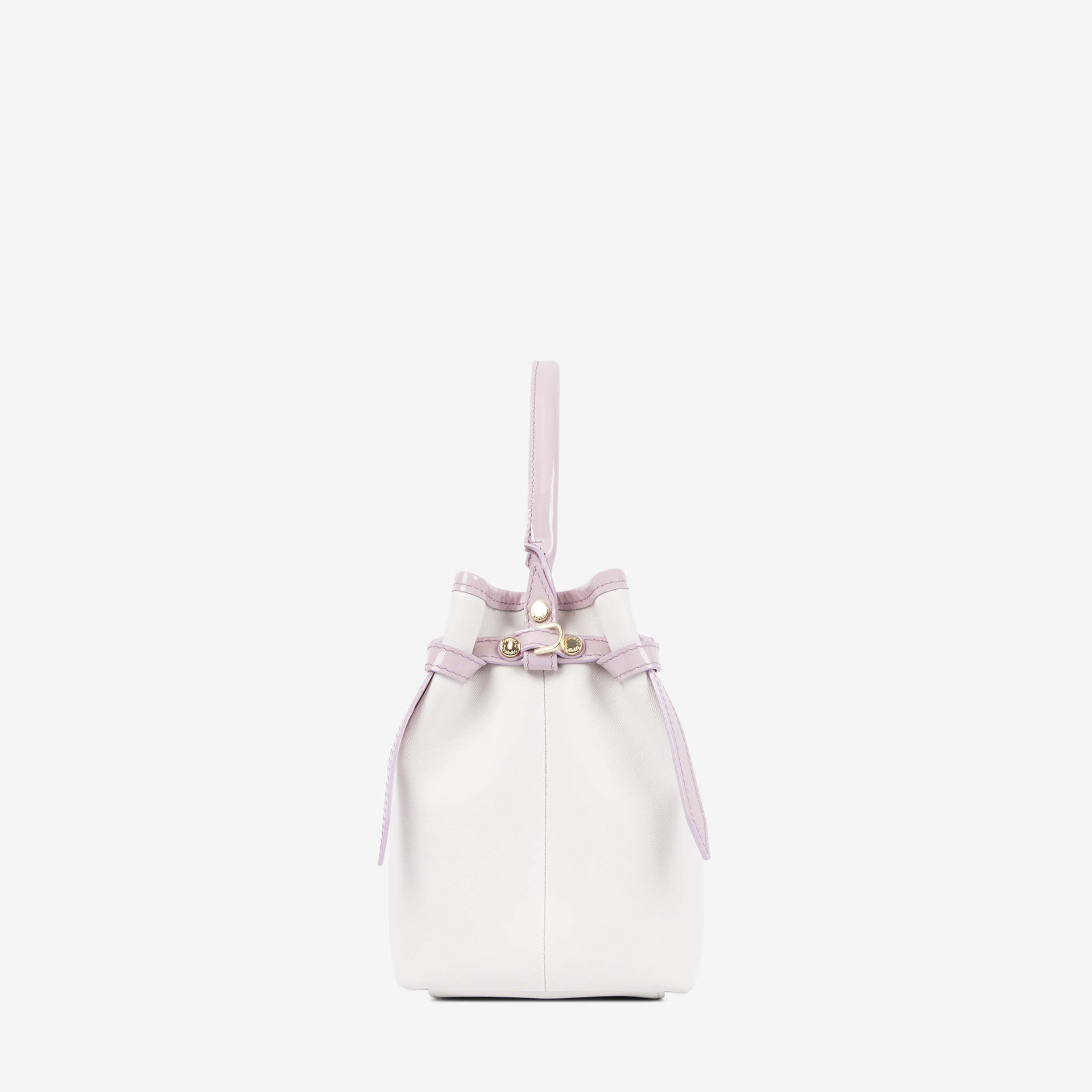Mala de mão em tela branca e detalhes em pele envernizada lilás. Divisória principal com forro em tecido, dois bolsos interiores e fecho de correr. Asa dupla de mão em pele envernizada lilás. Pormenor branding no tecido. Aplicação dourada CV. Coleção exclusiva e limitada Dear Me.