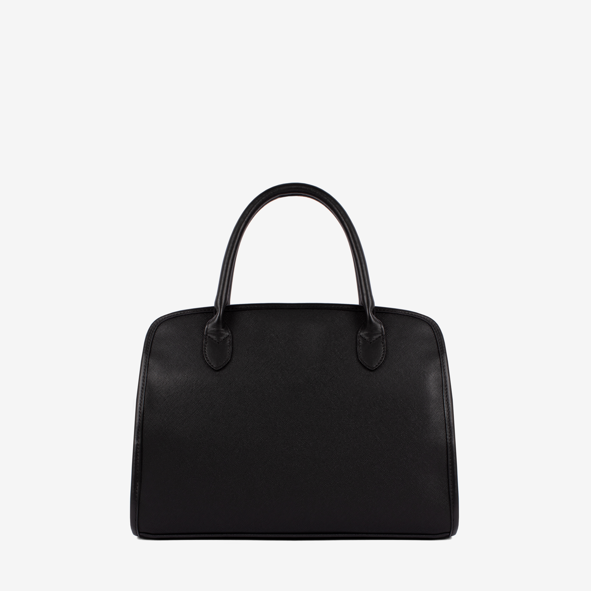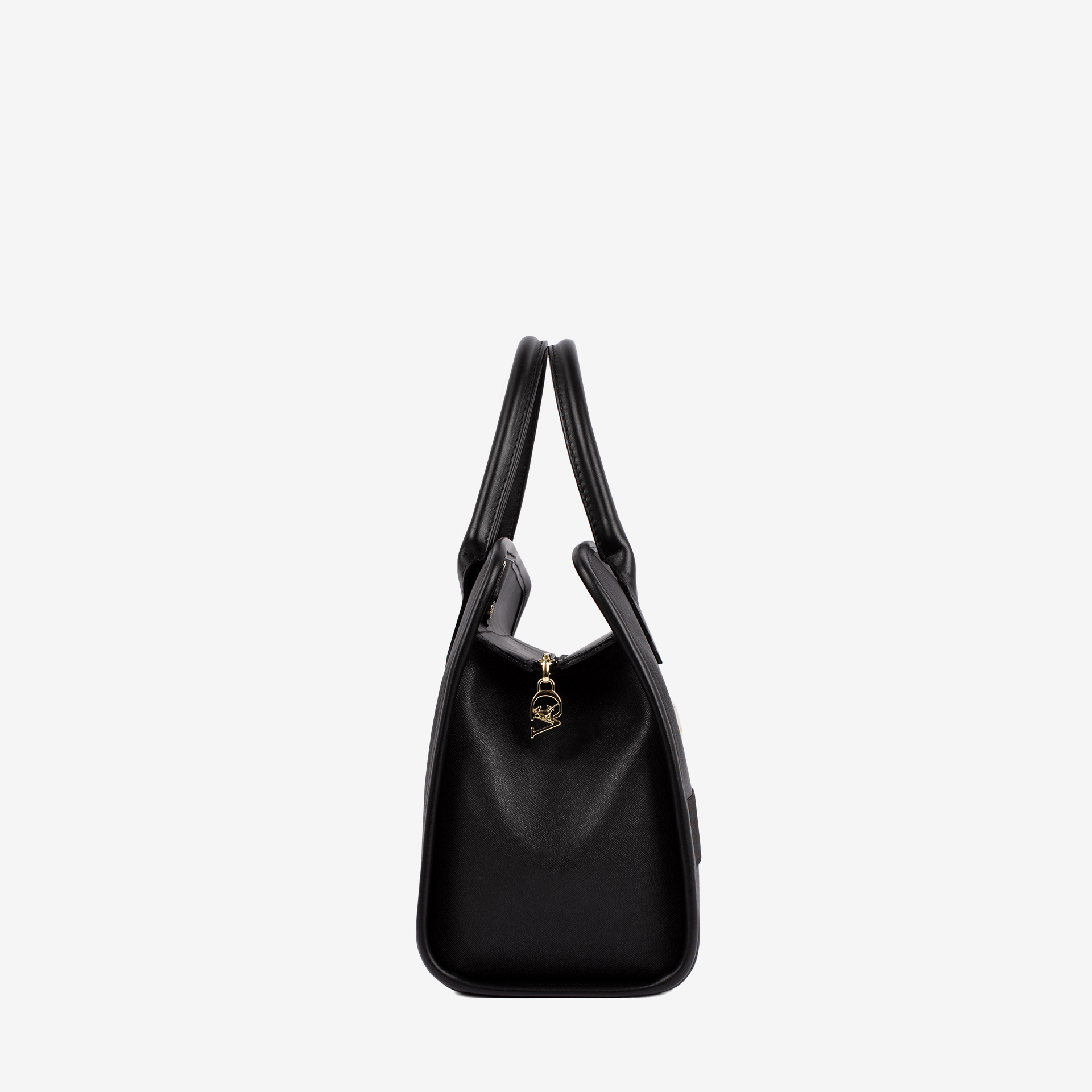 Mala de mão em tela preta com detalhes em pele genuína . Divisória principal com forro personalizado, compartimento a meio com fecho de correr e dois bolsos pequenos. Asa de mão dupla em pele e alça de tiracolo em tecido. Pormenor branding no tecido. Aplicações douradas.