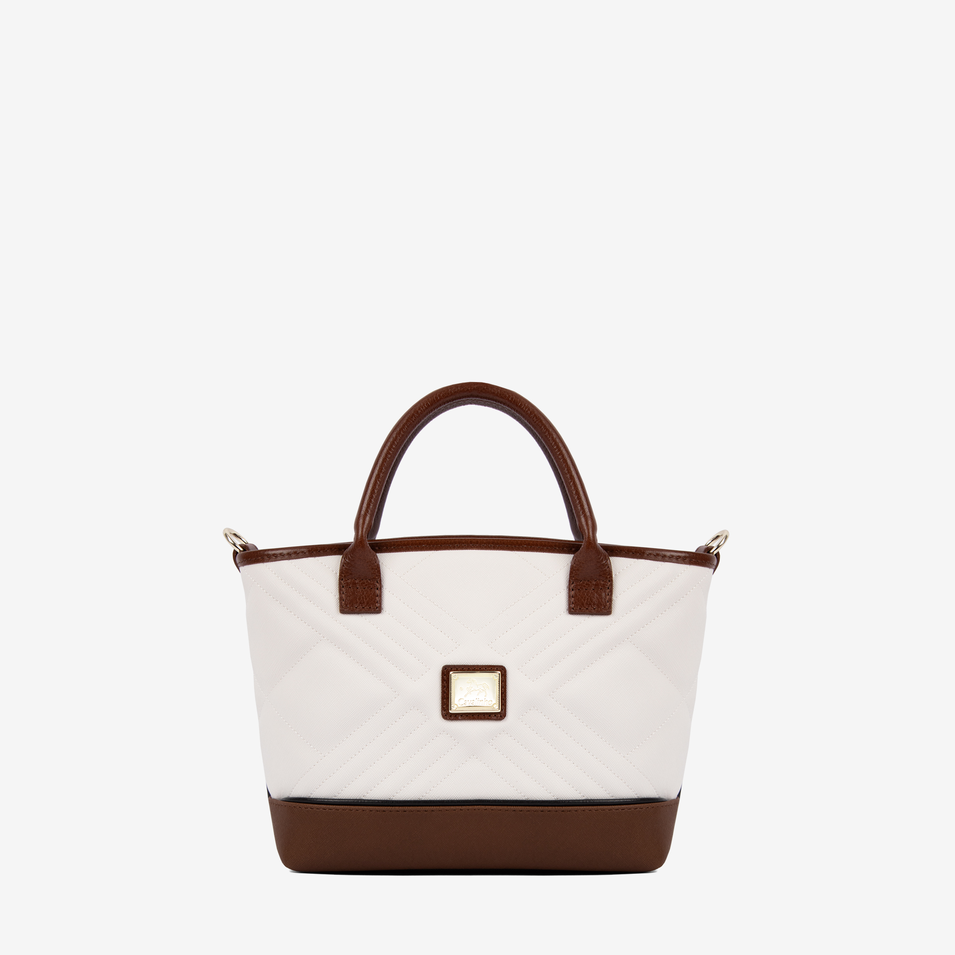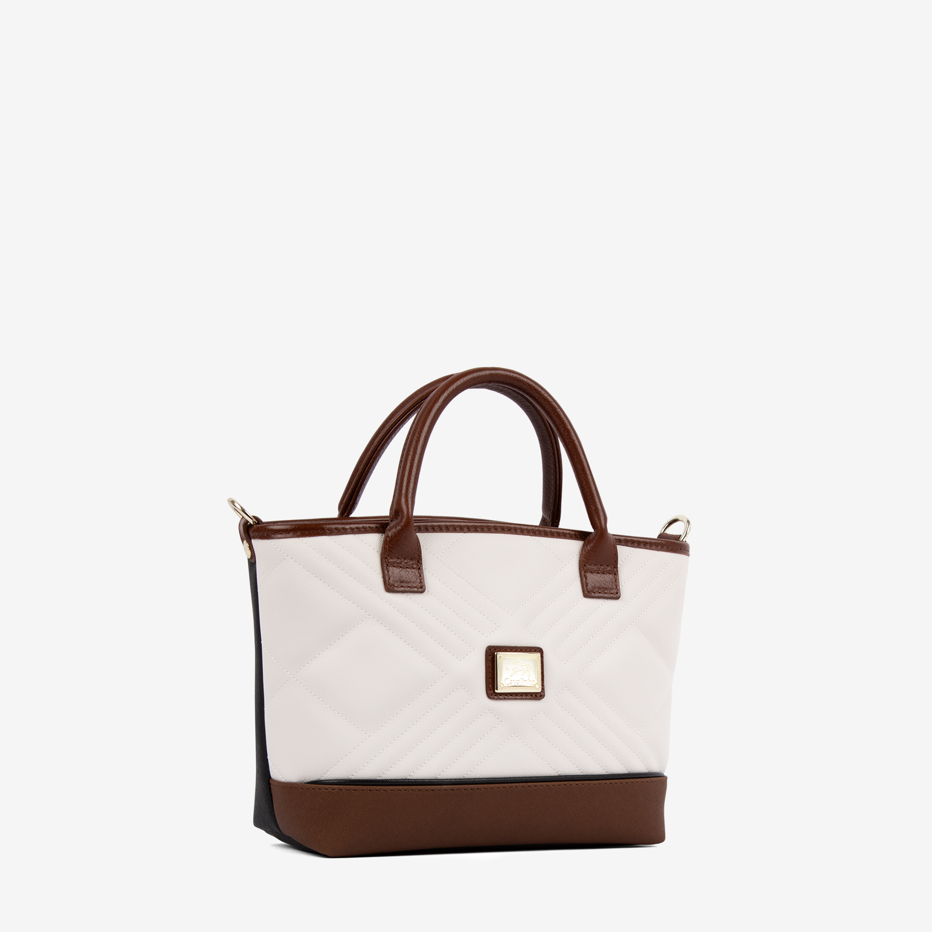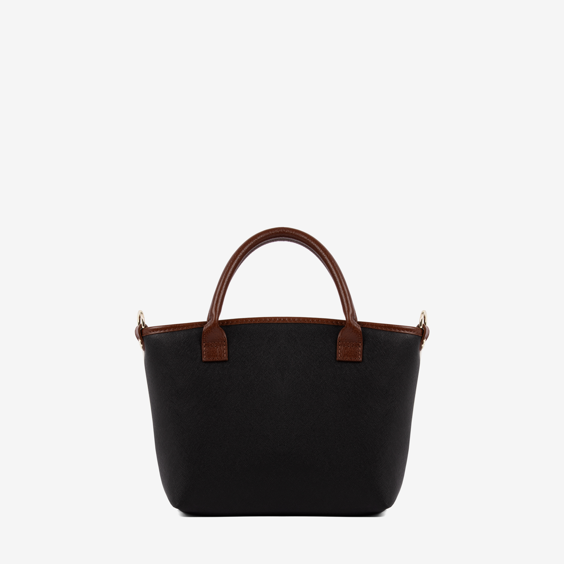 Mala média em tela da coleção Poésie, na cor preto e camel. Asa dupla de mão e alça de tiracolo ajustável e removível, ambas em pele. Divisória principal com fecho de correr, forro personalizado e dois bolsos pequenos.
