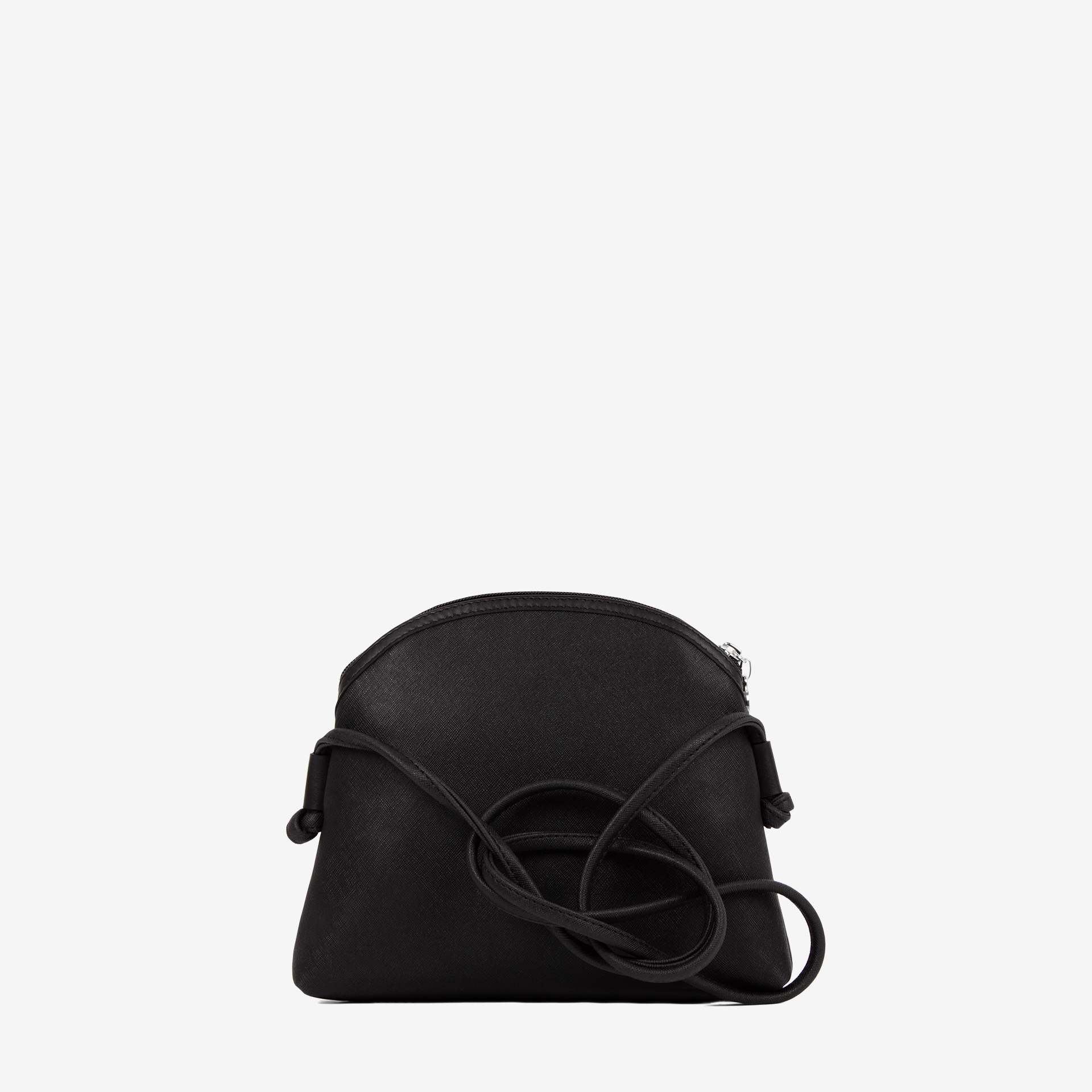 Mala de tiracolo em tela cow print e com detalhes em pele genuína, na cor preto. Divisória principal com forro em tecido, dois bolsos interiores pequenos e fecho de correr. Bolso pequeno exterior com fecho de correr na frente da mala. Alça tiracolo fixa em tela na cor preto. Pormenor gravação Cavalinho Club na cor prateado.