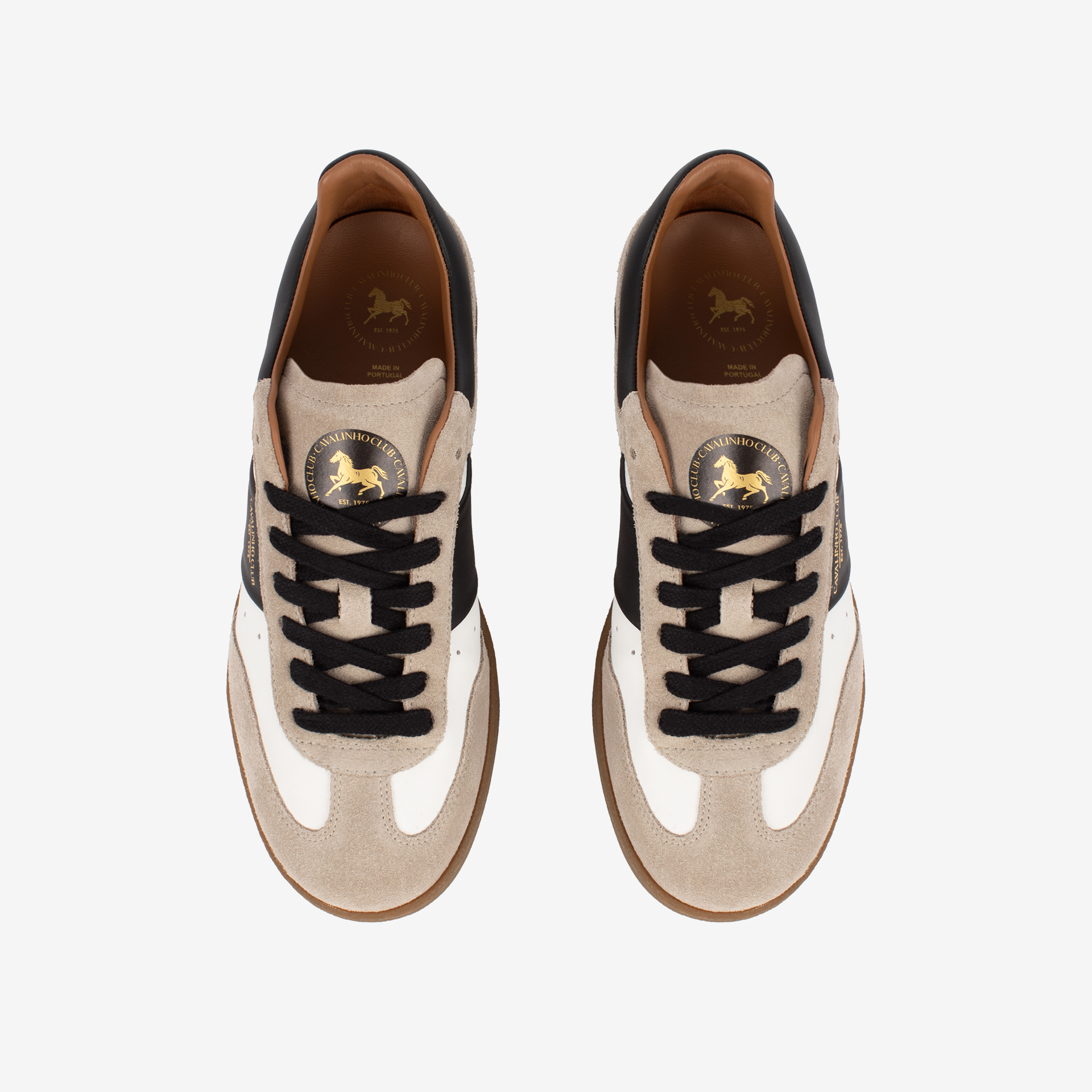 Sapatilhas Cavalinho Club em pele genuína e detalhes em pele acamurçada. Forro em pele de cordeiro e sola de borracha. Cordões em algodão. Pormenor branding Cavalinho Club na lateral. Fabricado em Portugal.