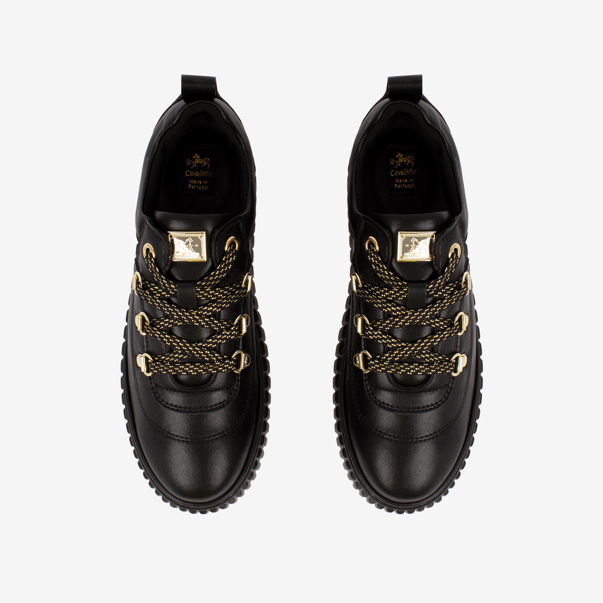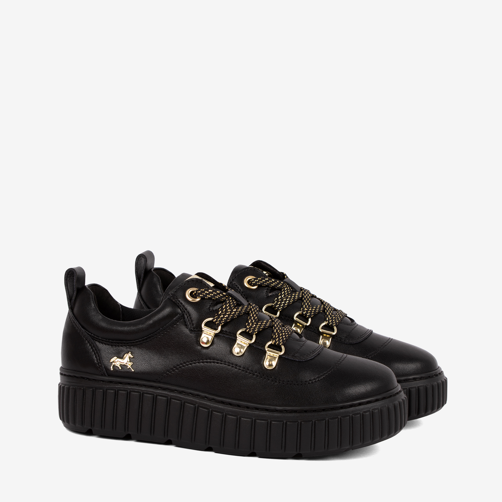 Sapatilhas Everystep em pele genuína e sola compensada. Forro interior em tecido e ponta redonda. Atacadores em poliéster para um ajuste confortável. Mini aplicação com logótipo. Fabricado em Portugal.